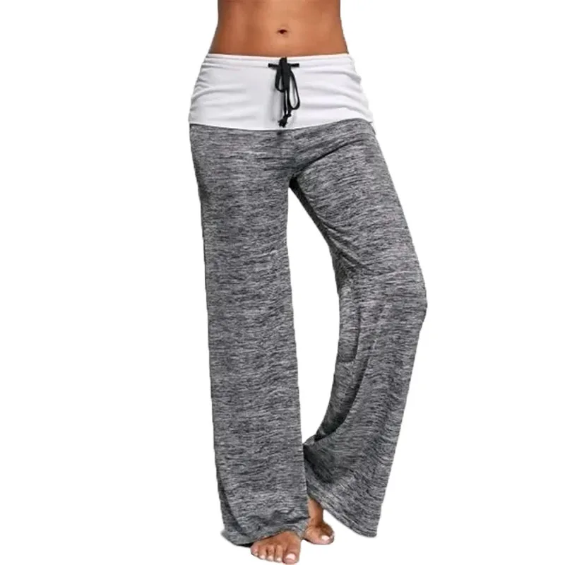 2025 New Loose Leggings Women Wide Leg Pants Lace Up Fitness Plus Size Trousers High Waist Female Patchwork Boot Cut Pants